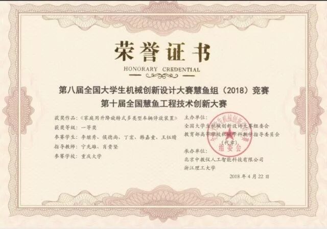 尽管这是重庆大学第一次参加该项比赛,但来自机械学院的两支队伍在宁先雄、肖贵坚等老师的带领下,与来自全国187所高校的500多件作品同台竞技,展现了优秀重大学子的风采。经过激烈的答辩展示、层层筛选,来自重庆大学机械学院的两支队伍,均获得了本次比赛的一等奖,其能力与优异可见一斑,充分证明了重庆大学人才培养的综合性、老师指导的全面性、以及重大学子与时俱进的创新意识。