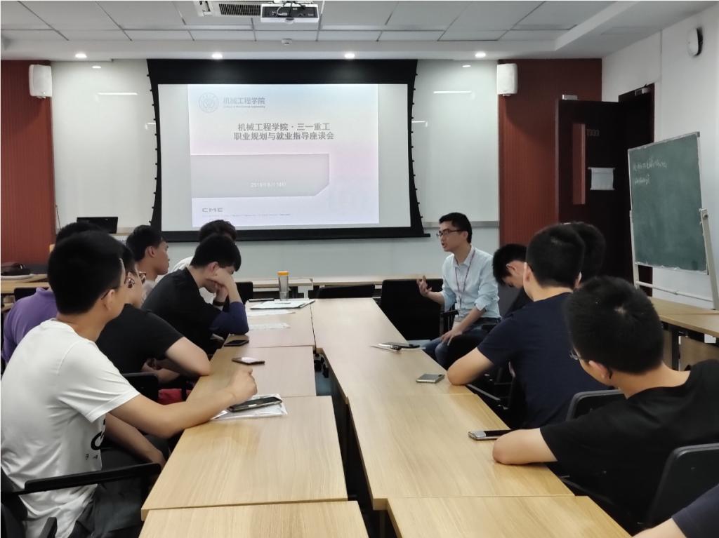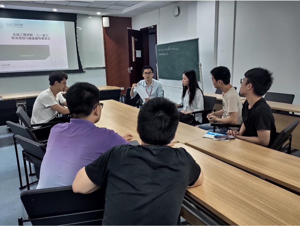 为促进机械工程学院研究生职业规划与就业指导工作的开展,提升我院研究生的职业规划和就业能力,使学生毕业后为国家和社会发挥出更大的能量。2019年6月17日下午3点,机械工程学院•三一重工集团职业规划与就业指导座谈会在机械工程学院7333教室召开,学院研究生辅导员崔学芳、张建坤及20余名研究生参会,座谈会邀请了三一重工集团校园招聘负责人黄经理等两人作为嘉宾到场交流。