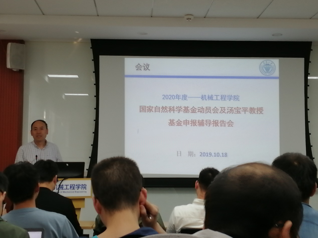 本次会议由汤宝平教授主讲。首先汤宝平教授在国家自然科学基金动员会上进行了近三年基金申报情况和获批情况进行了回顾,并成立了学院基金申报工作小组和学院评审专家组,对学院2020年基金申请工作进行了展望。