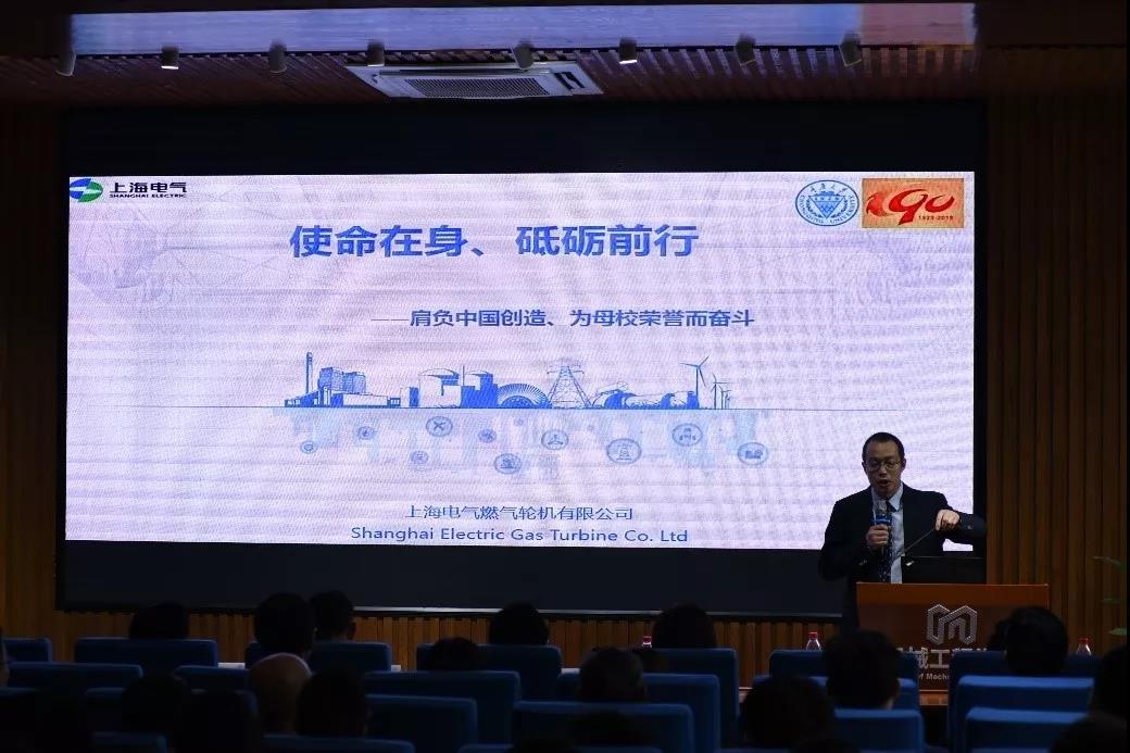 研高工、上海电气燃气轮机有限公司总经理、上海市重点工程立功竞赛立功个人、上海市青年岗位能手、上海市启明星崔耀欣作“使命在身、砥砺前行”的报告。崔耀欣表达了自己对母校校训、校风、教风、学风的理解,向师生们讲述那些在公司里奋斗的校友们的动人故事。