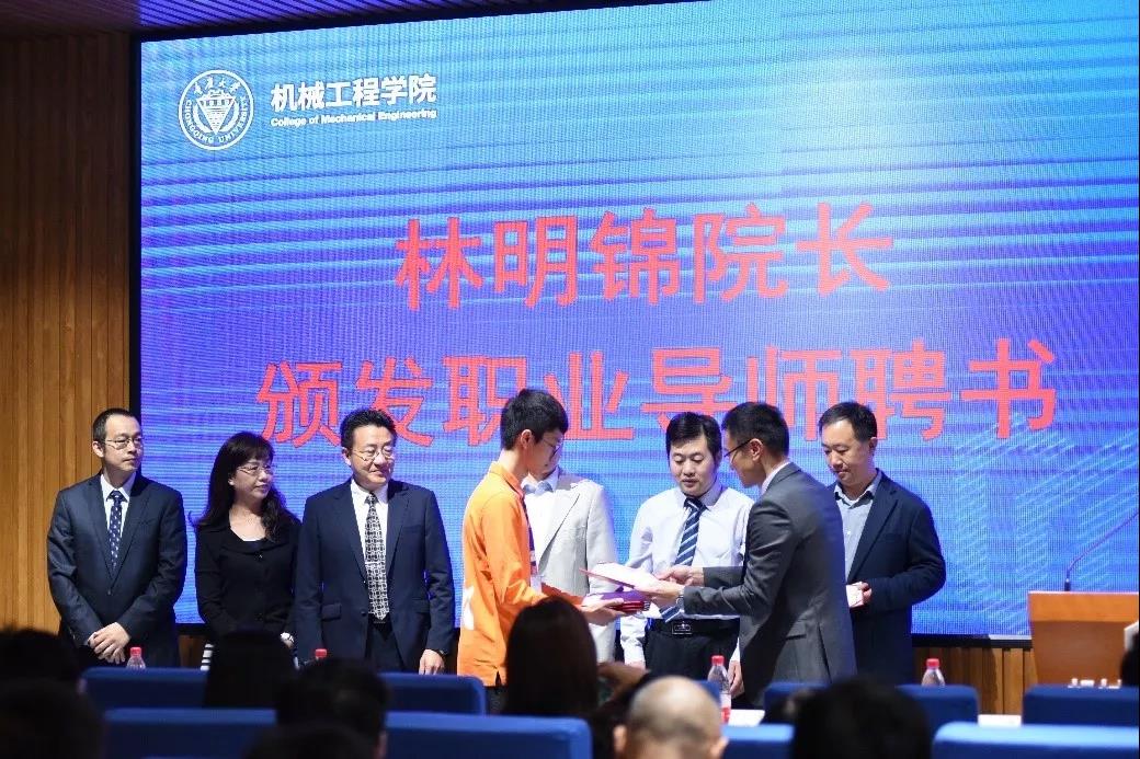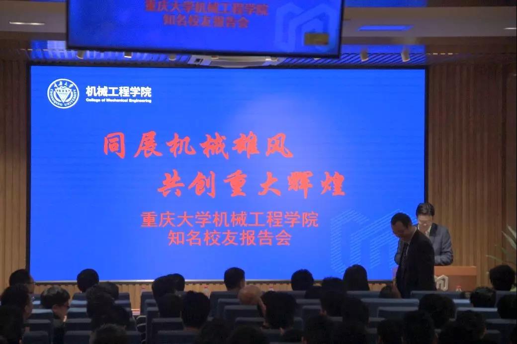 2019年10月11日上午9:00,重庆大学机械工程学院在第七教学楼7335报告厅举行了“同展机械雄风,共创重大辉煌”知名校友报告会。从五湖四海返校的历届机械工程学院校友们以及学院师生百余人欢聚一堂,共庆母校九十华诞。知名校友亢恒、李先广、刘检华、崔耀欣、涂敏、王小峰以及机械工程学院相关领导与师生代表参加报告会,机械工程学院党委书记陈晓慧教授致欢迎辞,院长林明锦教授为校友颁发机械工程学院职业导师聘书。本次报告会由机械工程学院副院长曹华军教授主持。