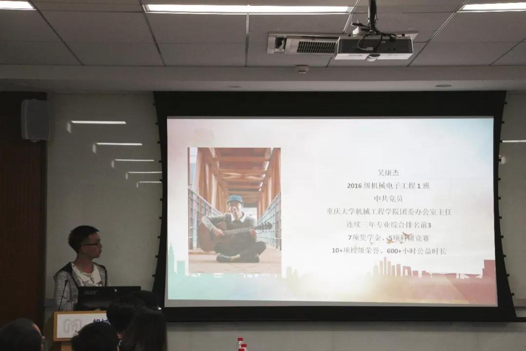 学生代表张永杰同学、宋佩恒同学以及吴康杰同学纷纷以“奋斗的青春”为主题讲述了自己的校园学习生活,优秀的成绩、竞赛的奖状、科研的初窥门径、丰富的社团组织生活、深入贫困地区下乡支教的宝贵经历,无一不证明着奋斗的青春是如此多姿多彩。