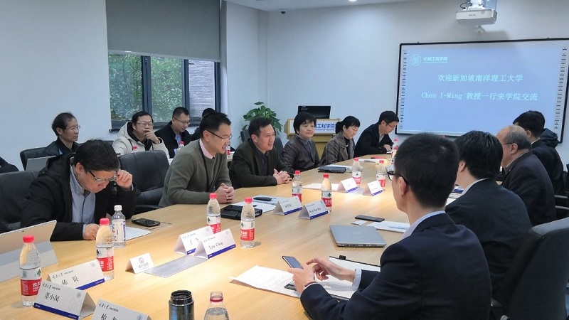 2019年11月23日,重庆大学机械工程学院与新加坡南洋理工大学机械与宇航学院,于重庆大学机械工程学院7338会议室召开双边合作洽谈交流会。出席本次交流会的我方人员有重庆大学副校长王时龙、机械工程学院党委书记陈晓慧、院长林明锦、副院长陈锐、副院长刘飞以及机器人卓越创新中心各位教师。南洋理工大学代表有Chen I-Ming院士、Wan Man Pun副院长、Wang Han教授、Lum Guo Zhan教授与Lyu Chen教授。会议分上、下午两个阶段,第一阶段双方就交流基础进行了沟通,第二阶段就合作的具体情况进行了磋商。
