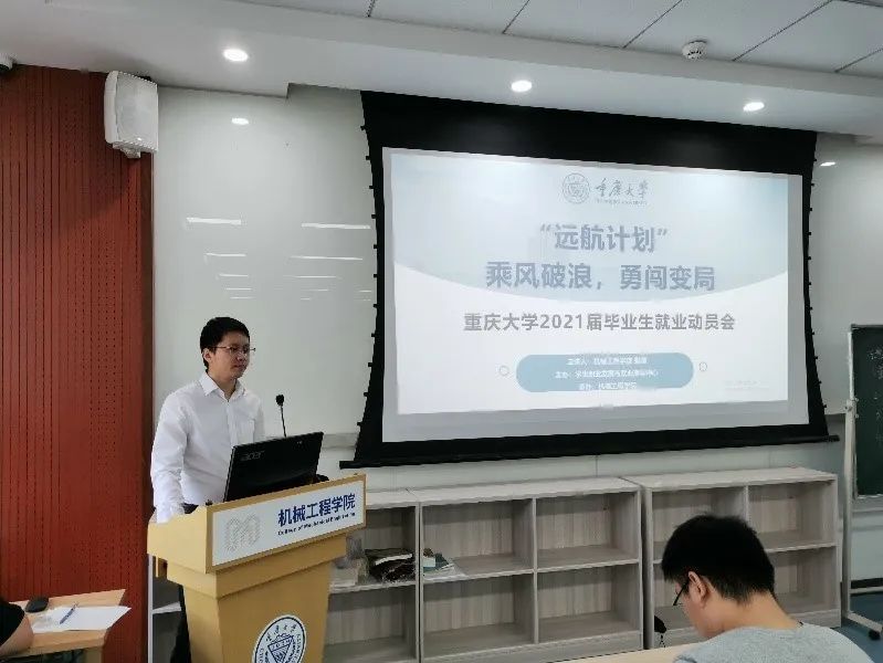 为明确学生的个人职业发展方向,明晰就业路径,实现毕业生高质量就业,2020年9月,由重庆大学学生职业发展与就业指导中心主办,机械工程学院承办的“远航计划—重庆大学2021届毕业生就业动员会”在研究生院顺利举行。此次动员会共分四场,分别由机械工程学院团委书记张翔老师、2021届本科毕业生年级主任王晓君老师、本科生辅导员刘益君老师、研究生辅导员张建坤老师主持。各位老师主要从升学与就业选择、就业新形势与新空间、相关政策解读、学校就业指导与服务介绍等方向,为毕业生就业求职进行支招,总计覆盖本科生、研究生800余人。