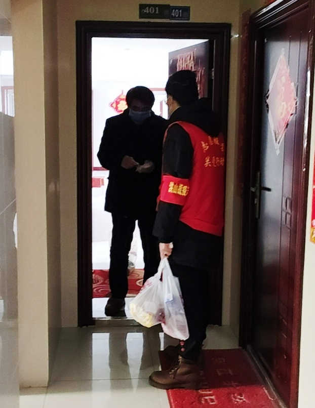 终于在二月二十三日,武汉市在全网专项招募志愿者,专门为小区居民代购代送。他看到消息后,立刻报了名,顺利地成为了志愿者中的一员。带上红袖章,穿上小红马甲,共同抗击这场战疫。在这里,有和他一样的志愿者、有仍然坚守在岗位上的工作人员、还有各种企业下派的人,他们一起全力地保障着整个小区的正常运行。