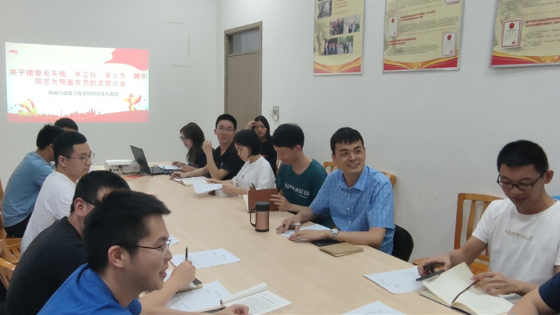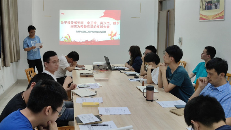 2021年6月1日晚上19点30分,中共重庆大学机械与运载工程学院研究生九支部于机械传动国家重点实验室综合实验楼二楼会议室召开支部大会。出席本次会议的有研究生九支部党支部书记刘怀举,研究生九支部党支部副书记赵帅涛以及各位党员及预备党员,会议由支部副书记赵帅涛主持,本次会议主要讨论接收预备党员以及开展党支部活动两项议程。会议严格按照中国共产党关于接受预备党员的相关条例进行,高举中国特色社会主义伟大旗帜,拥护中国共产党的领导,吸纳优秀学生壮大党员队伍,凝聚起支部力量,为支部更好的发展打下坚实的基础。