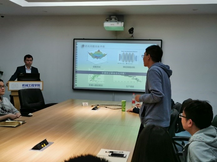 易进分享的主题是“基于近似模型的全局优化方法”,科研实践中,优化问题无处不在,易进从“黑箱子”全局优化开始,为大家介绍了近似模型与基于近似模型的全局优化算法框架。他还介绍了两种优化算法(贝叶斯算法、RBF-DYCORS算法)并对他们的优势劣势进行了比较,他还为大家介绍了在DYCORS基础上提出的一种多可信度RBF模型的优化方法。同学们就科研中遇到的具体优化问题、六自由度机器人末端执行器运动空间优化、齿轮减重轻量化、参数过多如何进行降维、电磁负刚度重力补偿器的设计优化等内容与易进进行了交流。