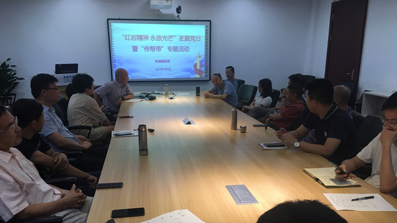 为庆祝中国共产党成立 100 周年,引导广大党员不忘初心、牢记使命,帮助青年教师进一步提高教学水平,2021年7月8日下午,机械与运载工程学院基础系在职老师及部分退休老师在7338开展了“红岩精神 永放光芒”主题党日暨“传帮带”专题活动。