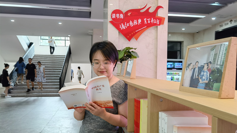学院的“红色经典读书角”为师生提供了600余本红色经典读物,涵盖了党建党史、优秀党员传记、红色诗词散文等内容,打造了优雅、安静、整洁的阅读环境,营造了党史学习的浓厚氛围。