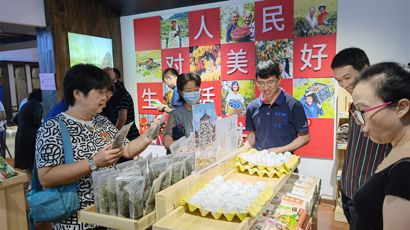 各个货架上摆满了琳琅满目的特色农产品:石柱的黄精饮料、南川的竹笋、城口的老腊肉等,还有新疆的哈密瓜、青海的牦牛肉,各个地方的优质特产汇聚于此,极大的激发了老师们的购买热情。