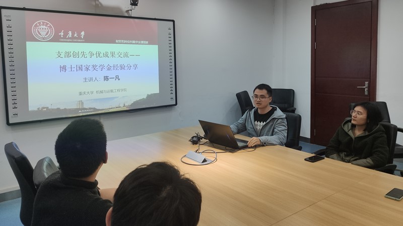 2021年11月4日晚7点,机械与运载工程学院研究生十四支部在7338教室召开了以“回顾百年奋斗历史,汲取伟大建党精神,开启百年奋斗征程——创先争优成果交流——陈一凡博士国家奖学金经验分享”为主题的党日活动,活动由支部书记冉琰主持,国家奖学金获得者陈一凡同志进行了分享。