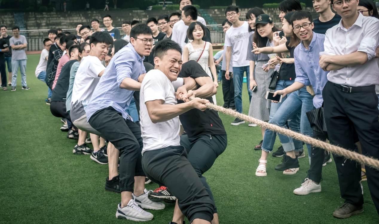 接下来进行的活动是毕业生拔河争霸赛。本次拔河比赛有四支队伍参赛,分别为由本科18级机自专业1-5班组成的一队、6-10班组成的二队、机电和工工专业组成的三队以及由研究生组成的四队。当裁判员吹响比赛开始的哨声后,只见双方队员们紧紧拉住长绳,憋着气,咬着牙,卯足了劲拼命往后拉!在一浪高过一浪的加油、呐喊声中,只见长绳中间的红标一会儿向左,一会儿向右,两支队伍的旗鼓相当。经过几轮比赛,最终由机电和工工专业组成的三队荣膺冠军。