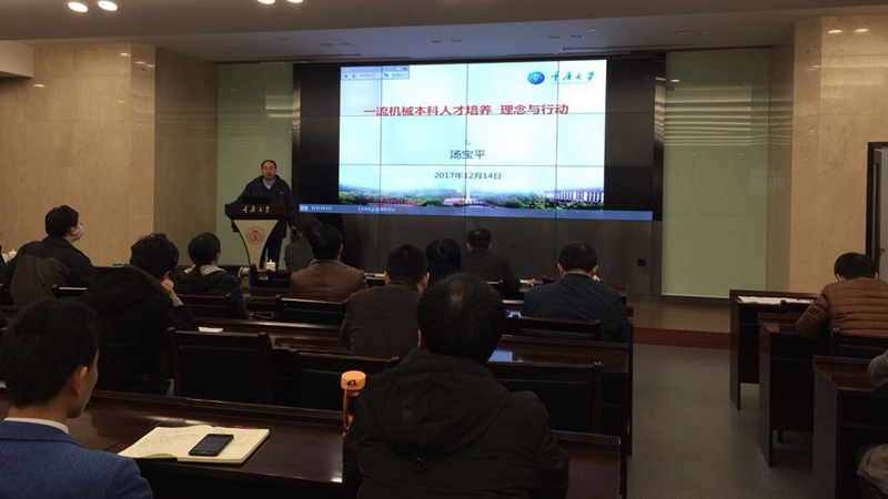 随后,副院长汤宝平教授做了“一流机械本科人才培养理念与行动” 的主题报告,他指出高等教育发展的主要矛盾已经发生了变化,这就要求高等教育必须走以质量提升为核心的内涵式发展道路。一流本科和一流本科教学,是内涵式发展的题中应有之义。我们必须深化人才培养的改革,以学生为中心,满足广大学生多元化、多样性的成长需求。面临新时代、新环境、新要求,在重庆大学进入“双一流”建设的关键时期,我们必须要有理念和行动!
