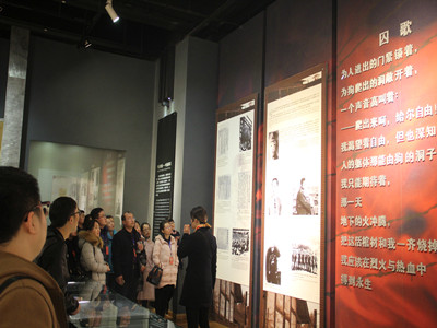 下午两点半,大家在红岩魂广场集合,拾阶而上,抬眼望去,“红岩魂陈列馆”赫然入目,初冬的午后,天空密云林步,庄严之气在同学们的心中升起。红岩魂陈列馆于1963年在原“中美合作所阅兵台”旧址上建成,主要陈列展览了白公馆和渣滓洞革命烈士的斗争事迹。在这里,同学们看到了陈旧的电台和泛黄的密码本,仿佛在诉说这一幕幕惊险的对敌情报斗争;珍贵的革命历史资料,展现着一场场可歌可泣的悲壮故事。其中有“江姐”的对敌斗争事迹;有誓死如归的烈士陈然在敌人的枪口下写下《我的“自白”书》事迹,“对着死亡我放声大笑,魔鬼的宫殿在笑声中动摇,这就是我--一个共产党员的自白,高唱凯歌埋葬蒋家王朝”;最令人动容的是“小萝卜头”--宋振中的事迹,他是中国革命斗争中牺牲的最年幼的烈士,1岁连同父母宋绮云、徐林侠烈士被捕入狱,在狱中长大,在男牢房和女牢房间帮助党组织传递重要消息,可惜年仅9岁就被敌人残忍杀害。