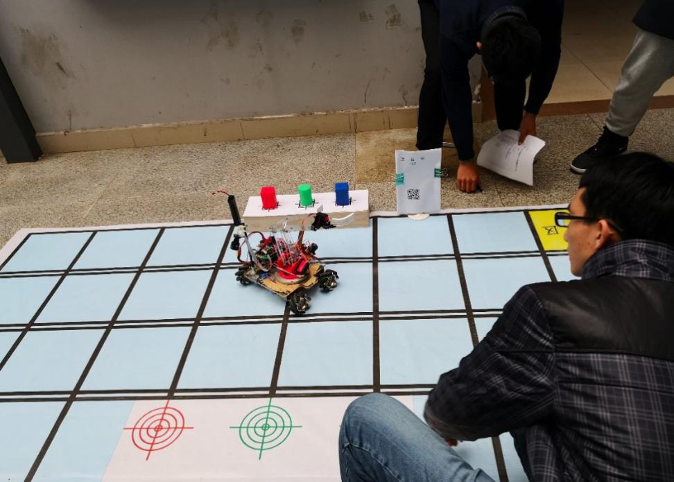 智能物流小车竞赛:要求用自己设计机械结构和编写程序的电控小车,根据扫描二维码的存放顺序将物料依次存放在相应的位置。作为参赛项目中难度最大的一个项目,选手们在现场的调试中遇到了诸多的困难,但是他们毫不松懈,在经过反复测试调整之后,各组参赛队员都顺利完成了比赛。最后,庞金龙、侯兆祥组获奖。
