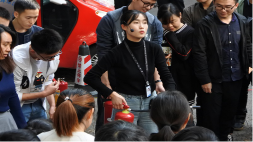 讲座结束后,肖老师向参与讲座和培训的老师和同学们实地展示了如何正确使用消防设施。在演练过程中老师和同学们细心听讲积极参与,纷纷表示要将消防安全意识落实的实际生活当中,真正做到防灾减灾。