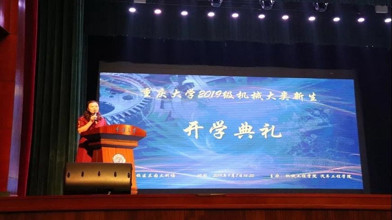 2019年9月7日下午2点30分,重庆大学机械大类迎新典礼于重庆大学虎溪校区兰园大剧场举行,本次大会由机械工程学院学生工作办公室主任杨联星老师主持。出席本次典礼的领导有:机械工程学院党委书记陈晓慧、汽车工程学院院长郭钢、机械工程学院副院长刘飞、机械工程学院副院长陈锐、汽车工程学院副院长胡建军、汽车工程学院党委副书记刁宇翔,以及各系主任、学工、教务等工作人员。2019级机械大类全体新生及部分家长参加了典礼。