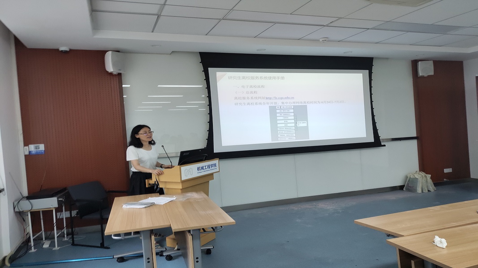 “毕业季”相关工作方面,明确了毕业合影、毕业典礼暨授位仪式相关要求和细节事项,以及离校派遣工作安排等,以《重庆大学研究生离校服务系统》为基础,再次梳理了毕业生离校手续中的各个重要环节,强调了重点和难点,提醒同学强化自主意识,认真办理各项事宜,确保顺利毕业。