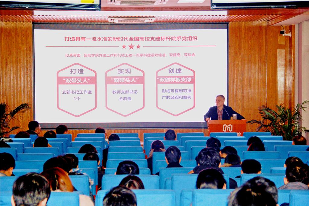 2019年1月3日下午,机械工程学院党委在七教335报告厅召开“全国党建工作标杆院系党组织建设动员大会”。学院全体党政领导、教职工党员、学生党员代表参加了动员大会。会议由学院党委书记王勇勤主持。