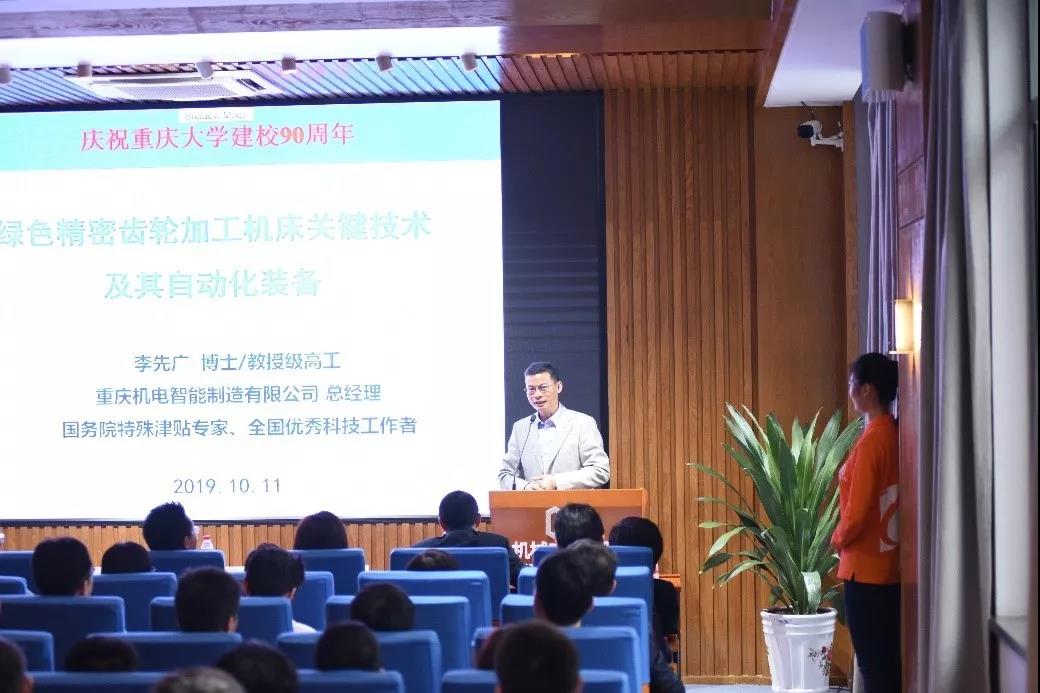 教授级高工、重庆机电智能制造有限公司总经理、全国优秀科技工作者李先广博士作“绿色精密齿轮加工机床关键技术及自动化装备”的报告。李先广博士说到自己在齿轮加工机床厂一路拼搏的故事,向师生介绍领域技术前沿,畅谈机械制造技术时代发展。