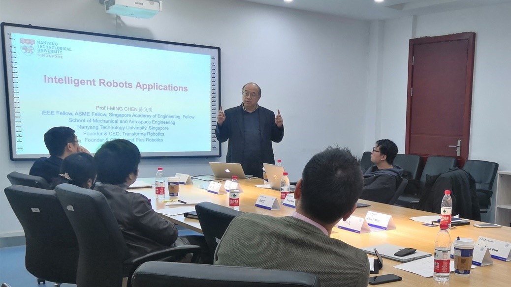 新方各位代表之后分别进行相关情况的介绍。Wan Man Pun院长介绍了南洋理工机械与宇航学院的基本情况,包括基础设施、学科、专业、教员、论文等,指出多名教授将研究成果投入了生产推向了市场;随后重点介绍了学院与各国际知名企业单位的合作,包括hp、dyson、SAAB、CAAS、LEONARDO、Rolls-Royce、SMRT等;最后重点分析了比较典型的研究成果,包括:昆虫控制、机械飞鸟、微型软体机器人、3D自由形打印、人形机器人、康复机器人、建筑机器人、微创手术机械手等。Chen I-Ming院士、Wang Han教授、Lum Guo Zhan教授与Lyu Chen教授就工业机器人在货物分拣与墙面喷涂、微型软体机器人磁控制、无人艇单目视觉、无人驾驶等具体问题分别进行了介绍。