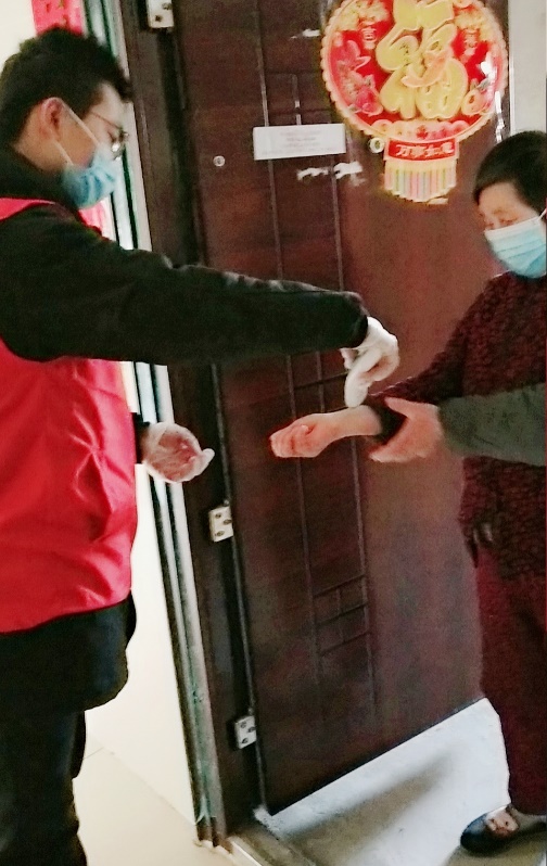 也许你们没有想到这样一类人的存在,他们不怎么会使用电子产品来团购蔬菜购买物资、他们的身体或许也不太方便、最重要的是他们的子女不在他们身边——他们是独居老人,是在这场战疫中现在最无助的人。他们是志愿者们主要帮助的对象。杨晗和其他志愿者们每天会上门为他们测量体温、询问家里的生活物资是否充足、身体是否不适。子女不在他们身边,在杨晗眼里,社区志愿者就是他们的最大依靠,而为他们送物资时,他们满脸的笑容就是最好的回报。