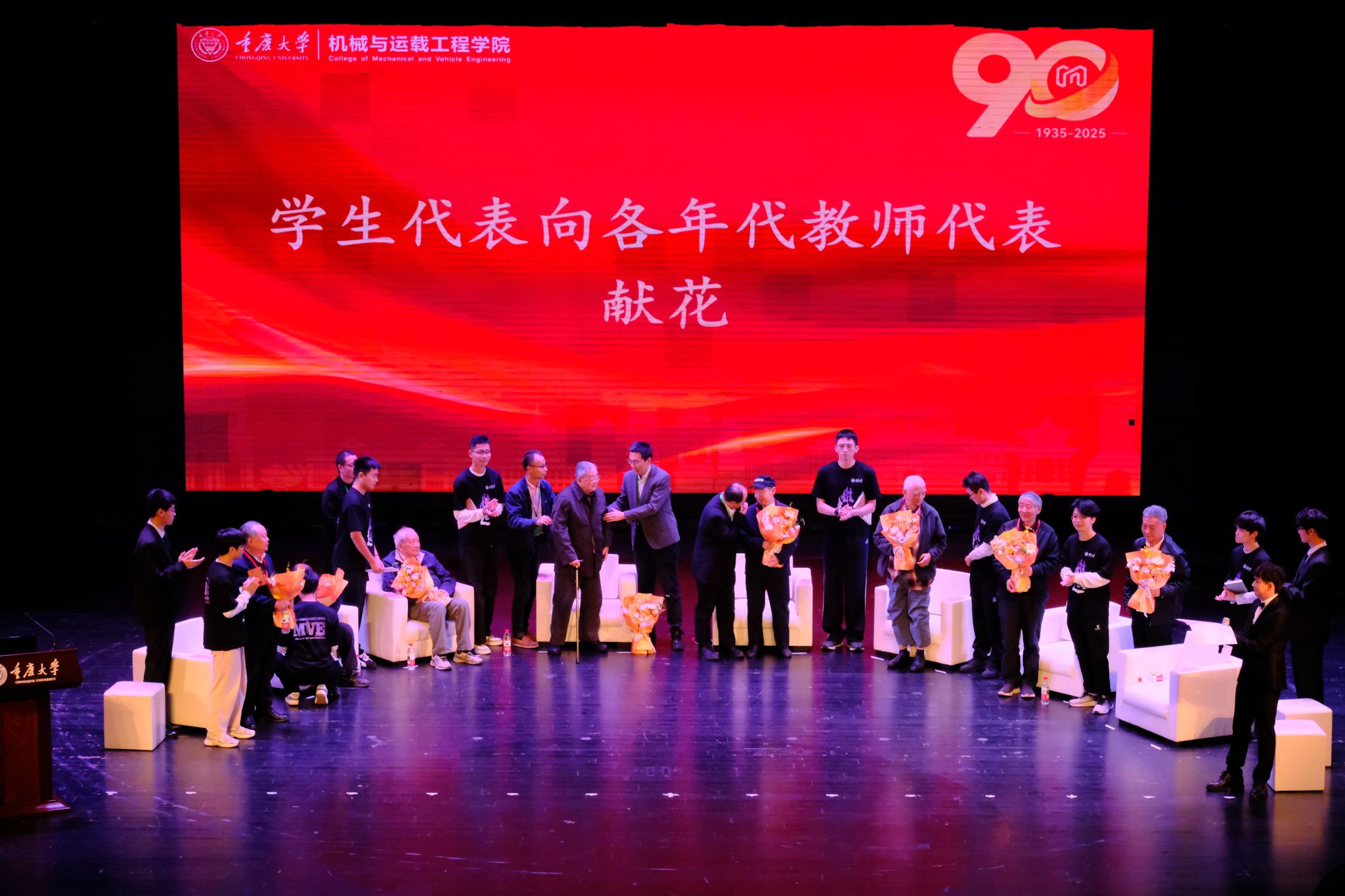 莘莘学子心,浓浓尊师情。学生代表向各年代教师敬献鲜花,表达全体在校生与海内外校友对恩师的崇高敬意与感恩之情。
